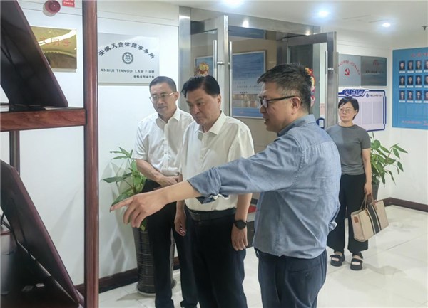 马胜利一行实地走访了安徽天贵律师事务所、安徽始信律师事务所等场所,详细了解当前律师服务、涉外法治、“非公”党建等方面工作情况,听取了全市司法行政工作情况汇报。