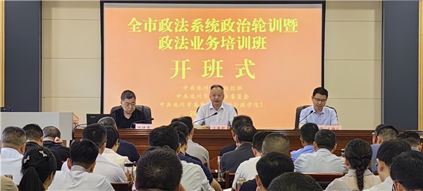 9月17日上午,由市委组织部、市委政法委、市委党校联合举办的全市政法系统政治轮训暨政法业务培训班在市委党校开班。市委政法委分管日常工作的副书记汪海船出席开班式并讲话,市委党校(池州行政学院)副校(院)长韩辉主持开班式。各县(区)委政法委、九华山风景区工委政法委分管负责同志和相关科室负责人以及来自全市56个乡镇(街道)党(工)委政法委员、江南新兴产业集中区、开发区、平天湖风景区负责政法工作的同志参加。